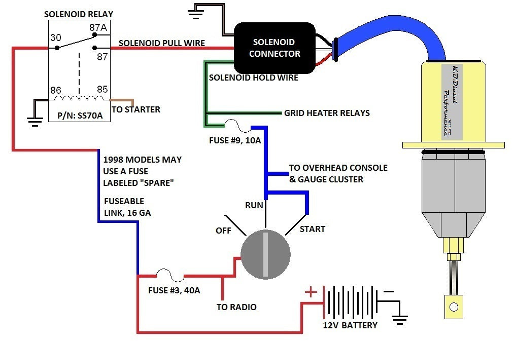 Upgraded Heavy Duty Fuel Shutdown Solenoid for 1994-1998 5.9L Cummins engines in 2500 & 3500 Dodge Ram Trucks.